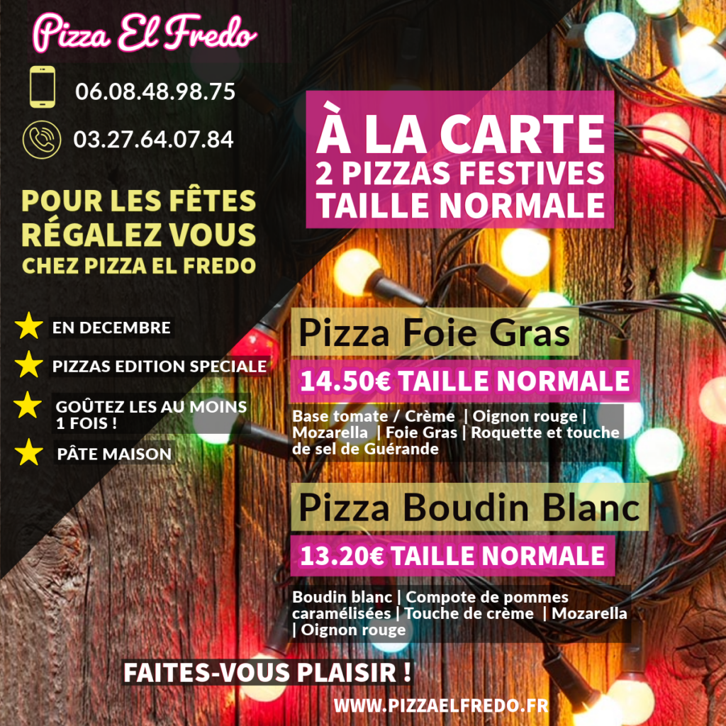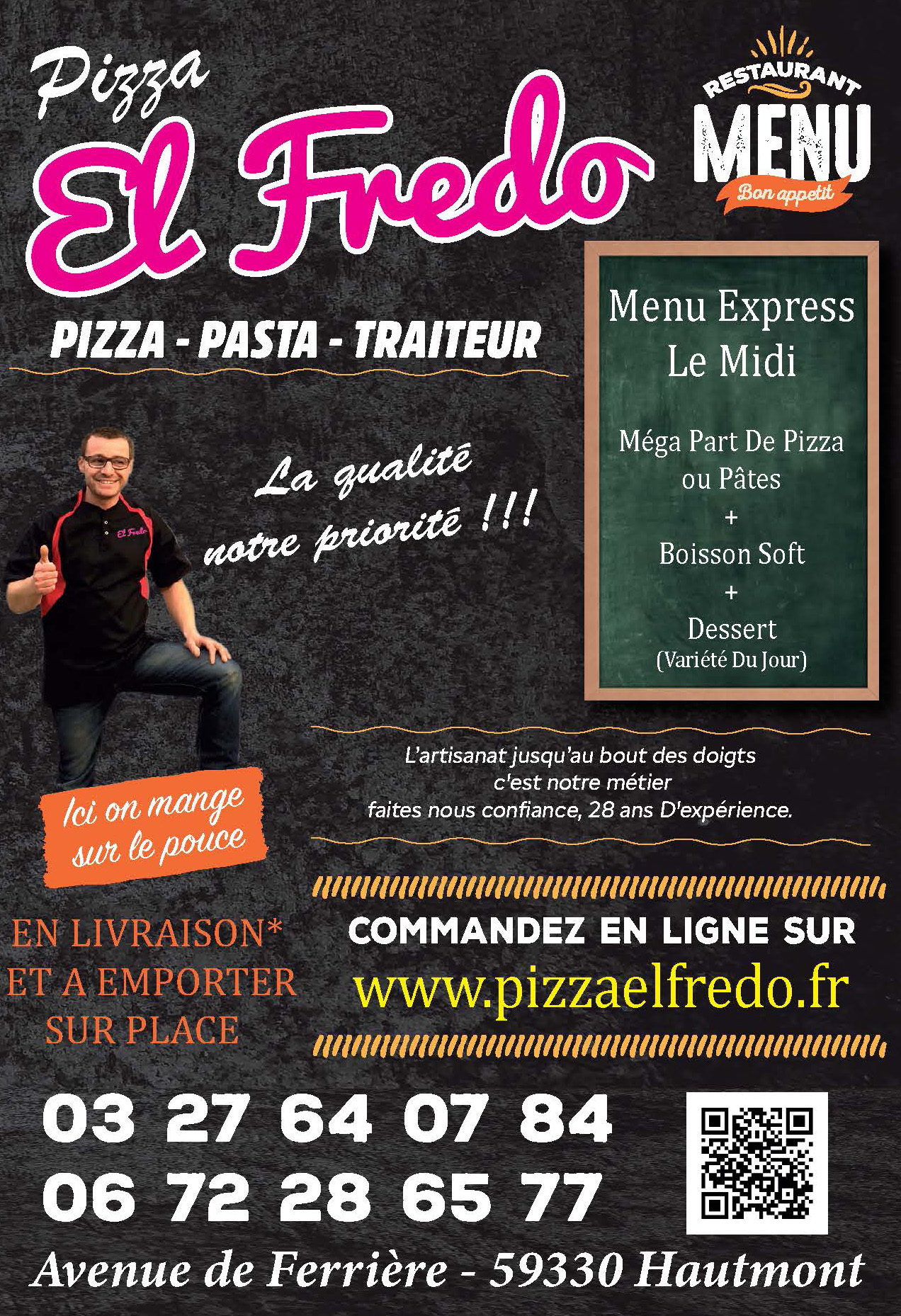 Retrouvez l’ensemble de la carte de Pizza El Fredo, en cliquant sur la rubrique de votre choix.