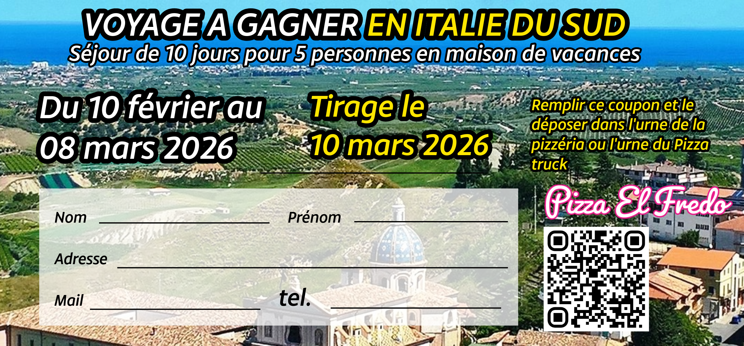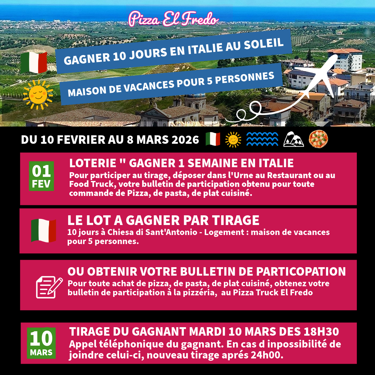 PIZZERIA & PASTA : Du Mardi au au Samedi Le Pizza Truck El Frédo est pres de chez vous de 18h00 à 21h30